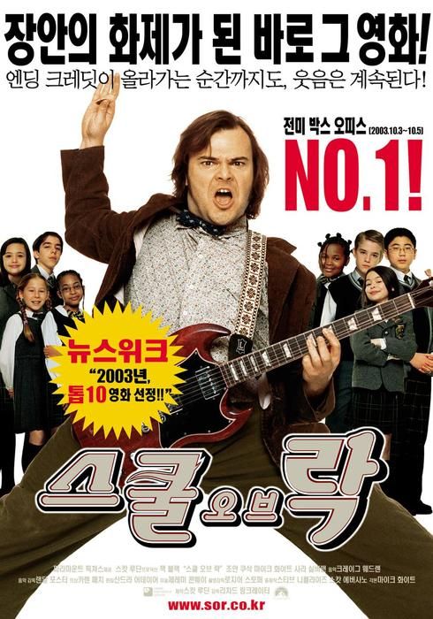 명문 초등학교의 기존 교육 시스템 속에서 갑갑하게 성장해 가는 학생들과 기존의 질서를 거부하고 록에 빠져사는 주인공 듀이는 첫 수업 때만 해도 결코 소통할 수 없을 것 같아 보입니다. 그러나 록이라는 음악을 구심점으로 서로가 마음을 열기 시작하고, 그렇게 공감대가 형성되자 속마음까지 보여줄 정도로 가까워지게 됩니다. 여기에는 여느 어른들보다도 어른스러운 학생들, 그리고 어린아이들 보다도 단순하고 천진난만한 듀이의 성격이 많은 영향을 미쳤으리라 봅니다. 록을 소재로 한 다소 코믹스러운 버전의 '죽은 시인의 사회'라는 평가가 있을 만큼 이 영화는 기존 교육에 대한 비판과 진정한 스승과 제자의 관계에 대해 다시금 생각해보게 합니다. 선생님과 학생들 간의 갈등과 그로 인한 사회적 문제를 주변에서 자주 접하게 되는 지금 현시점에 영화 속 '록'으로 대변되는 공감과 소통의 핵심 소재를 찾기 쉽지 않다는 냉정한 판단이 매우 안타깝게 생각됩니다. 결코 쉽지 않겠지만 어린 시절 모두가 가졌던 순수한 마음속 꿈을 계속해서 간직해 간다면, 그래서 성과 만능주의 사회를 바꿔갈 수만 있다면 우리는 영화 속 듀이처럼 어린 세대와의 진정한 소통을 이끌어 갈 수 있지 않을지 기대해 봅니다.