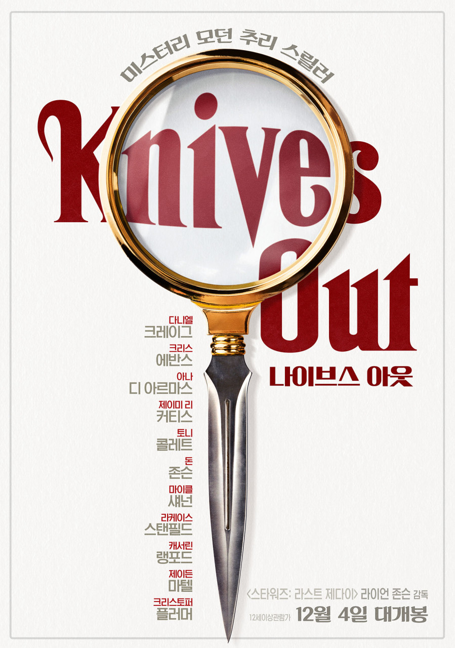 사립 탐정 '브누아 블랑'은 익명의 요청자로부터 사건을 의뢰받습니다. 발신자도 없이 현금과 '할런 크롬비'의 부고 기사만이 담겨있는 편지였습니다. '할런 크롬비'는 그도 아는 유명인이었습니다. 그의 추리 소설은 30개국 언어로 번역되었고 누적 판매량은 8천만 부에 이르는 베스트셀러 작가이기 때문입니다. 사건과 의뢰 방식이 흥미로웠던 블랑은 경찰과 함께 할런 가족들 조사에 참여하기로 합니다. 할런의 대저택에 도착한 블랑은 경찰들이 가족들을 심문하는 곳 뒤에 앉아 그들을 관찰합니다. 경찰의 조사에 처음으로 응한 것은 할런의 장녀 '린다'입니다. 그녀는 할런의 자식 중 유일하게 자신의 사업을 하는 사람으로 블랑의 유도신문에도 넘어가지 않는 똑똑한 사람입니다. 아버지 할런을 굉장히 애틋하게 생각하고 존경하고 있었습니다. 그의 남편인 '리처드'는 린다와 함께 부동산 회사를 운영하긴 하지만 직책만 사장이었고 하는 일 없이 아내에게 끌려다니는 사람이었습니다. 그는 블랑의 유도신문에 걸려 바로 가족들에 대한 험담을 시작합니다. 특히 할런의 자식 중 막내인 '월트'를 이야기를 합니다. 월트는 할런의 책을 출판하는 회사를 운영하는 사람으로, 1년에 2권씩 책을 써주는 아버지 할런 덕분에 어렵지 않게 회사 운영을 하고 있습니다. 최근 소설 각색 문제와 TV와 영화 판권 문제로 아버지와 크게 다투었다고 합니다. 마지막으로 며느리 '조니'가 있습니다. 할런의 둘째 아들 '닐'이 세상을 떠난 지 15년이 지났지만 조니는 여전히 할런의 가족들과 가깝게 지내는 사이였습니다. 스킨케어 사업을 운영하며 할런에게 딸의 학비와 자신의 사업 관련된 비용을 지원받고 있습니다.